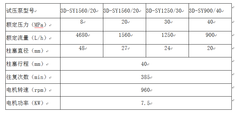 三、電動(dòng)試壓泵的技術(shù)參數(shù)